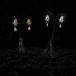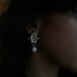 Inspired by my first encounter with the sea in Spain, the wax texture of these earrings is taken from a shell I collected. Pair of earrings with pearl and silver post. Cast in brass or silver.