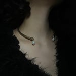 Solid hand-carved brass torque with two delicate pearl drops, with textured surface and a spine dot at the back. Cast in brass, slightly adjustable. Each piece is unique, no two are exactly alike.